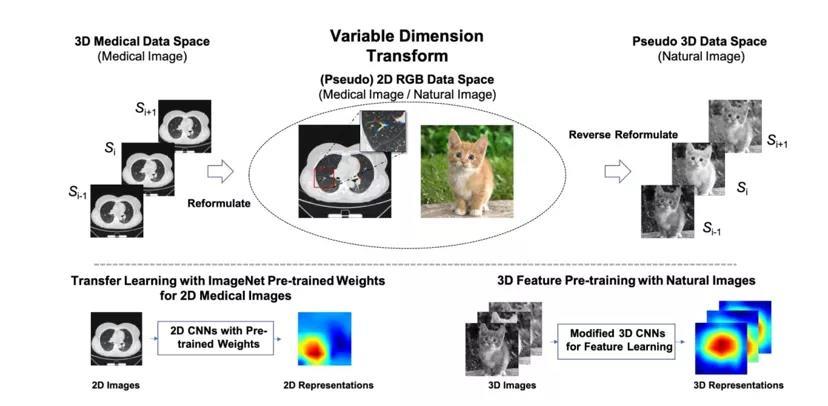 目前,虽然有一些公开可用的数据集(如LIDC-IDRI、LUNA等),但是这些公开数据集存在图像数量少,偏倚度高的问题,导致模型不可避免地出现过拟合。为了解决该问题,一般会借助迁移学习使用ImageNet等大规模数据集上的预训练参数加快模型的收敛;然而,对于3D医学图像(例如CT、MRI等),目前并没有很好的3D模型预训练参数。