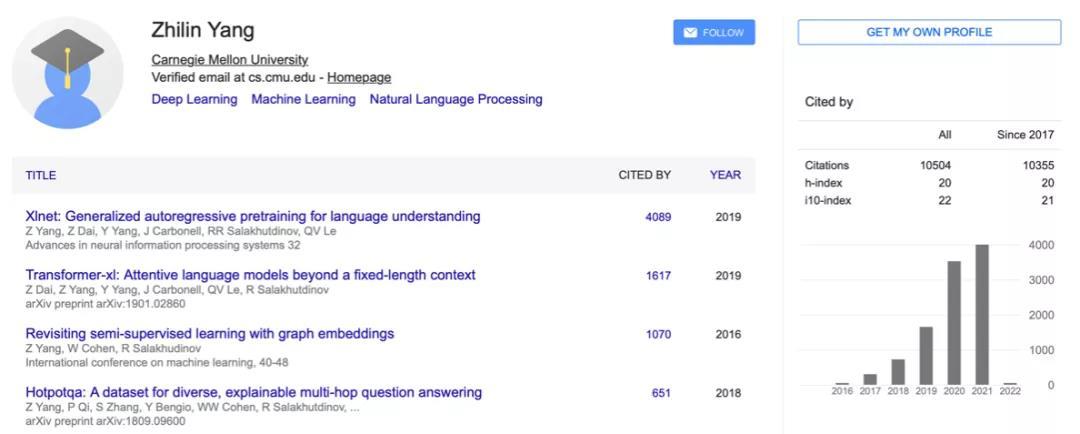 图注:杨植麟的谷歌学术论文被引主页