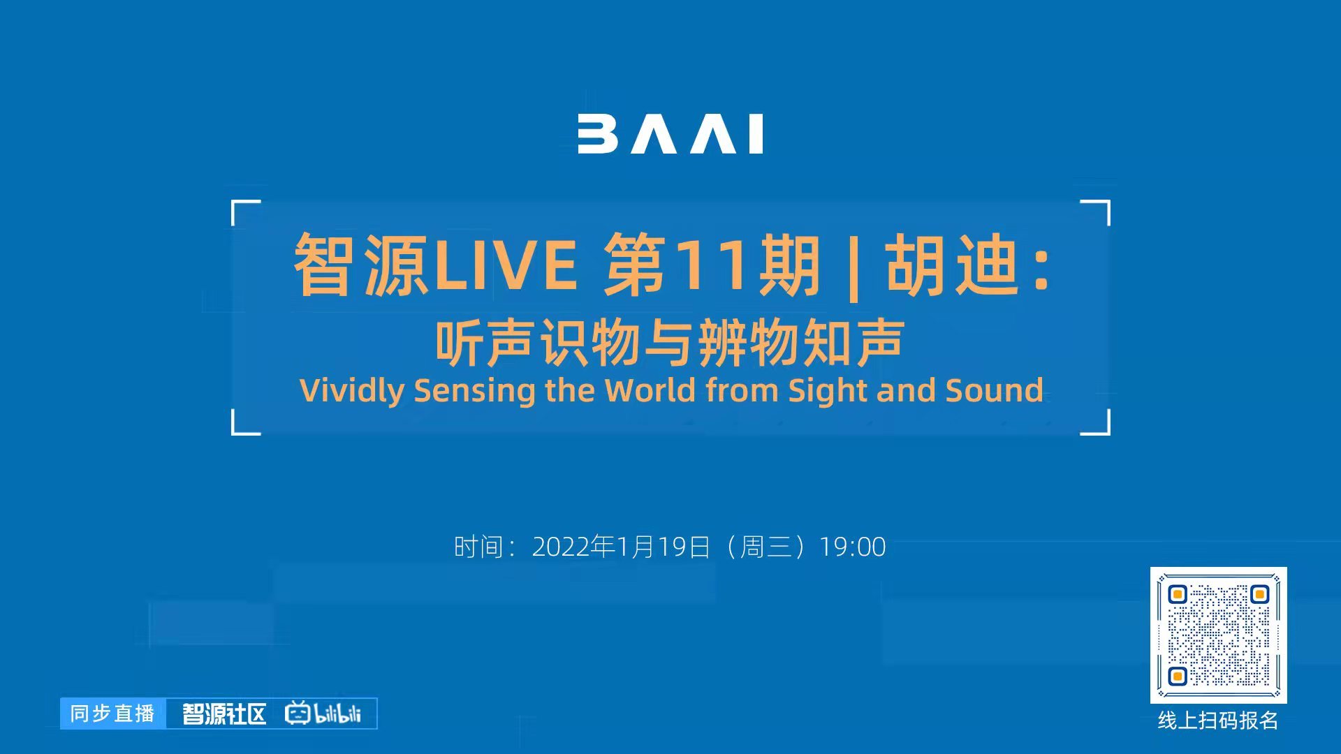 由智源社区举办的「智源LIVE 第11期 | 胡迪:听声识物与辨物知声」将于1月19日(周三)19:00-20:00举办,中国人民大学助理教授胡迪作主旨报告。