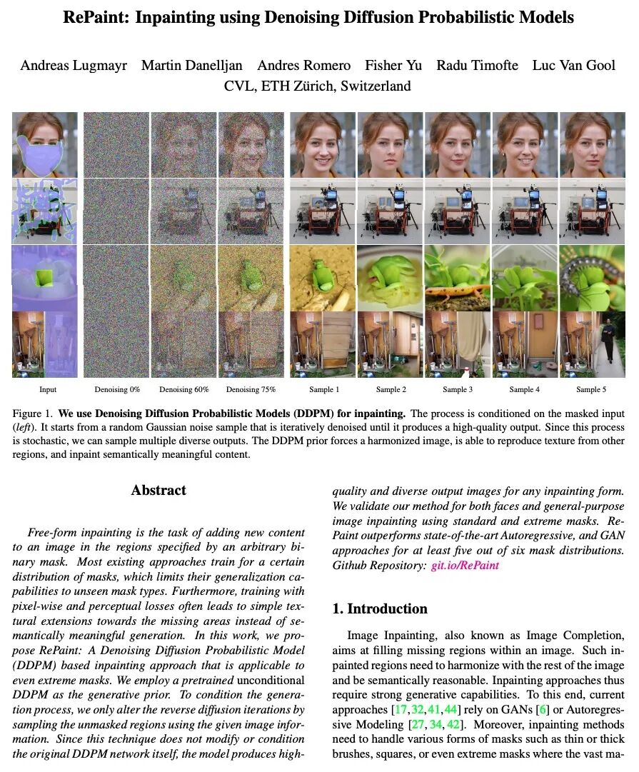 1、[CV] RePaint: Inpainting using Denoising Diffusion Probabilistic Models