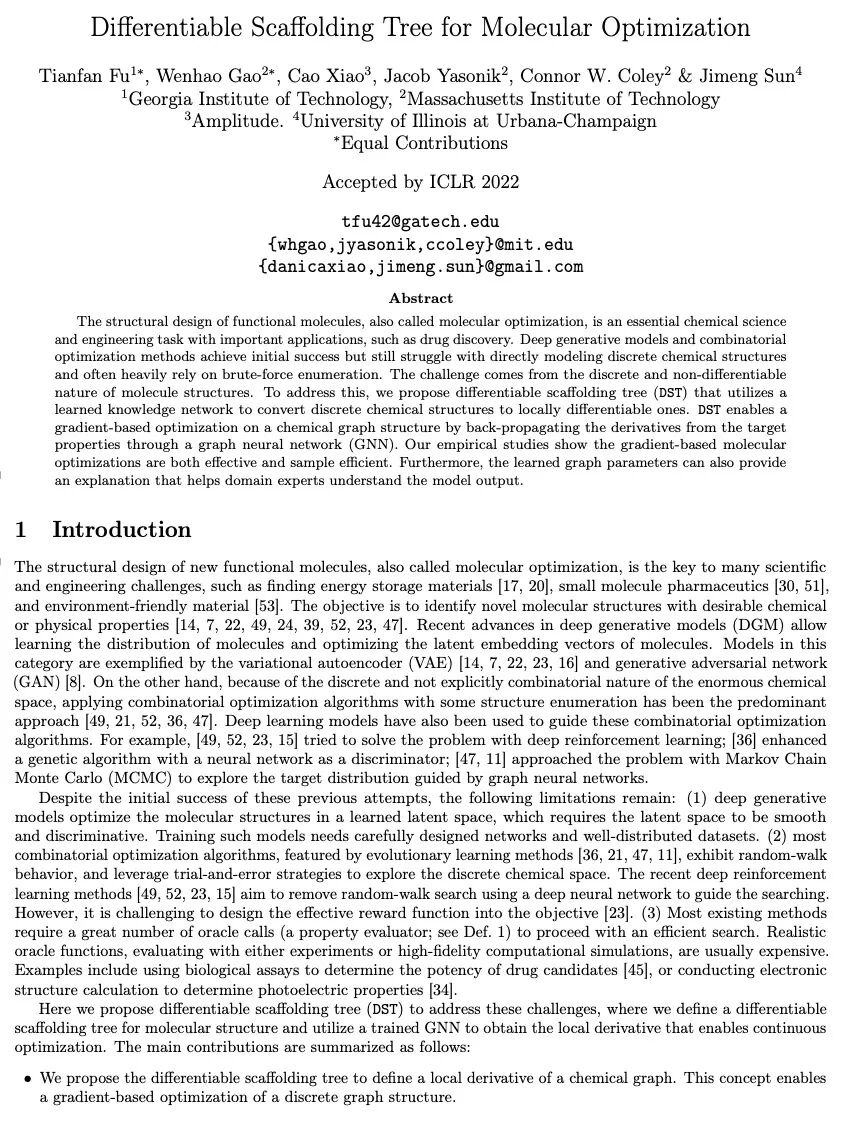 [LG] Differentiable Scaffolding Tree for Molecular Optimization