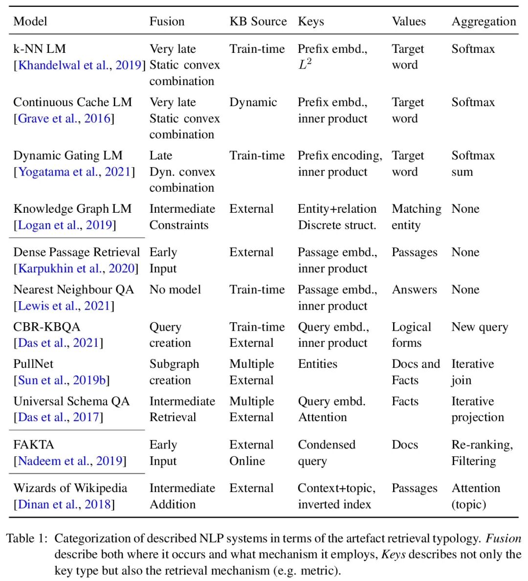 Artefact检索:基于知识库访问的NLP模型概览。许多NLP模型通过访问知识库来获得性能。很多研究都致力于设计和改进访问知识库并将其纳入模型的方式,从而产生了许多机制和管线。尽管提出的机制多种多样,但这些系统的设计仍有规律可循。本文系统描述了Artefact(从知识库中检索出的项目)的类型、检索机制以及这些Artefact被融合到模型中的方式。进一步能发现尚未尝试过的设计决定的组合。虽然大部分重点都放在了语言模型上,但也展示了问答、事实核查和知识对话模型也适合该系统。拥有一个可以描述具体模型架构的抽象模型也有助于在多个NLP任务之间迁移这些架构。