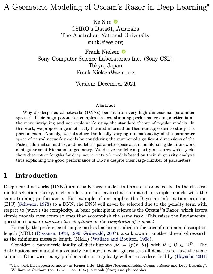 [LG] A Geometric Modeling of Occam's Razor in Deep Learning