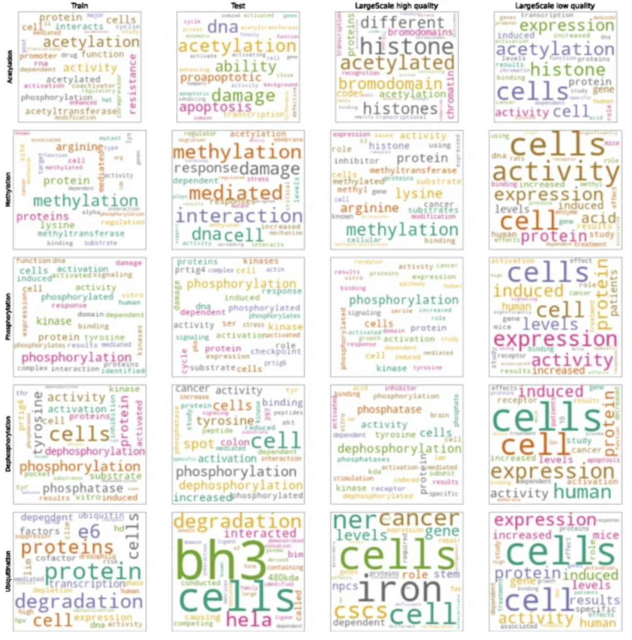 研究人员通过文本挖掘 PubMed 摘要来提取 PTM,提取蛋白质对及其相应的 PTM。给定输入期刊摘要,输出是 <Protein1, PTM function, Protein2> 形式的三元组,其中 Protein1 和 Protein2 是蛋白质的 Uniprot 标识符。由于他们的训练数据源不包含蛋白质之间关系的方向,所以不考虑 Protein1 和 Protein2 之间的关系方向,即 <Protein1, PTM function, Protein2> 等价于 <Protein2, PTM function, Protein1>。