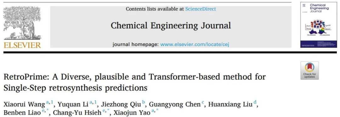 2021年9月15日,Chemical Engineering Journal杂志发表了兰州大学姚小军课题组和腾讯量子实验室谢昌谕博士等人合作的研究文章,该文章提出一种基于Transformer模型的新方法RetroPrime,用于同时解决基于Transformer模型的方法在逆合成预测中反应多样性不足和化学上不合理输出的问题。