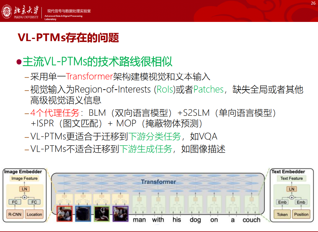 “当前的几个主流VL-PTMs的技术路线很相似,都采用单一 Transformer架构建模视觉和文本输入;视觉输入为 Region-of- Interests (Rols) 或者 Patches,缺失全局或者其他高级视觉语义信息……”