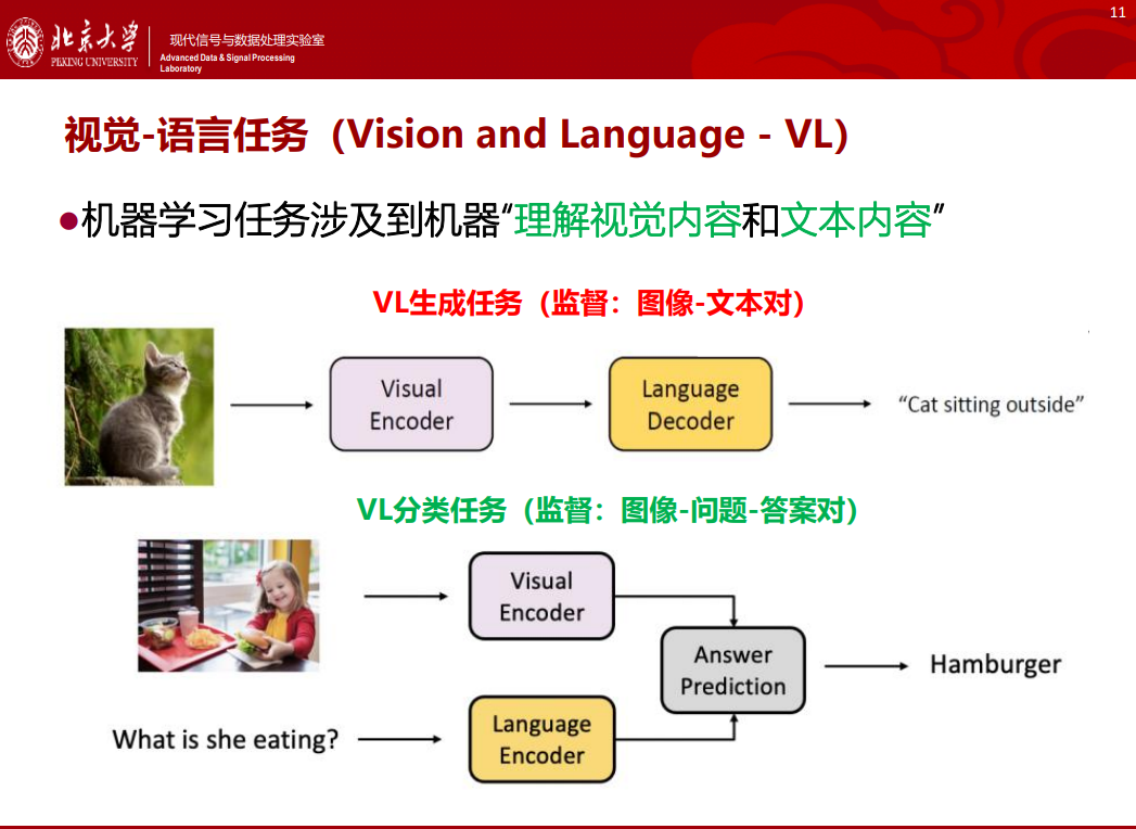 视觉-语言,英文名称是“Vision and Language,VL”。VL预训练模型旨在让机器处理涉及到“理解视觉内容和文本内容”的任务。VL任务可以分成VL生成任务和VL分类任务。