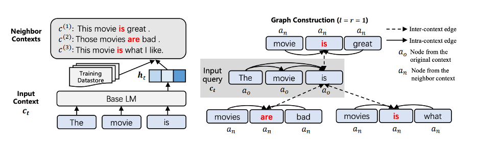 本文提出了一个全新的语义理解模式,将闭卷考试转化为开卷考试的语义理解模式:在测试的时候,模型允许参考训练数据。这样就将之前的“背”,转变成了“抄”,模型可以直接使用训练集中相关的例子来协助决策,这样问题的难度就大大降低了。以语言模型来举例,例如,给定前文“J.K.罗琳最知名的作品是”来预测后面的词“哈利波特”,如果语言模型可以引用训练集中相关的上下文“J.K.罗琳撰写了哈利波特系列书籍”,那么它就会更容易将下一个token预测为“哈利”,就像是有参考书的开卷考试比闭卷考试要更简单一样。