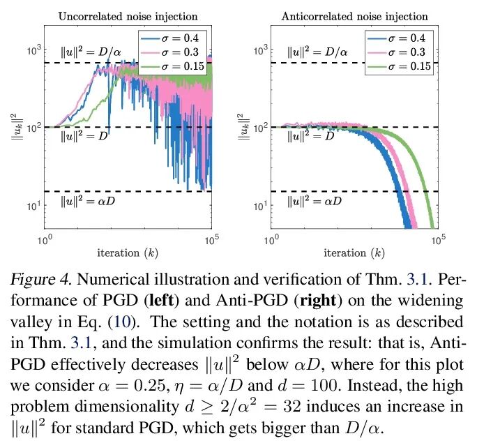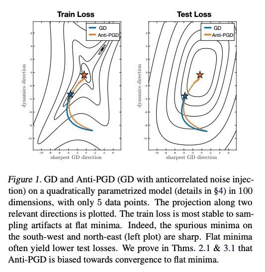 通过注入反相关噪声提高模型泛化能力。向梯度下降法(GD)注入人工噪声常用于提高机器学习模型的性能。通常,不相关的噪声被用于这种扰动梯度下降(PGD)方法中。然而,这是否是最佳的,或者其他类型的噪声是否能提供更好的泛化性能,目前还不得而知。本文放大了连续扰动梯度下降步骤中扰动的相关性问题。考虑了各种目标函数,发现具有反相关扰动的梯度下降(即"Anti-PGD")的泛化效果明显优于梯度下降和标准(不相关)扰动梯度下降。为支持这些实验结果,还推导出一个理论分析,证明Anti-PGD会移动到更广阔范围的最小值,收敛于山谷的平坦部分,而梯度下降和吧标准扰动梯度下降则仍然停留在次优区域(山谷的尖锐部分),甚至偏离。在真实数据的现实实验中(如CIFAR 10),同样观察到Anti-PGD收敛到平坦的最小值,而且泛化性很好(与GD和标准PGD相比)。反相关噪声和泛化之间的这种新联系为利用噪声来训练机器学习模型开辟了新途径。