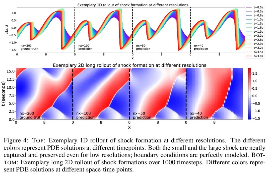 消息传递神经偏微分方程求解器。偏微分方程(PDE)的数值求解是很困难的,迄今已经历了一个世纪的研究。最近,人们一直在推动建立神经-数值混合求解器,这与现代的全端到端学习系统的趋势相吻合。到目前为止,大多数工作只能推广到通用求解器所要面对的多种属性的一个子集,包括:分辨率、拓扑、几何、边界条件、域离散正则、维度等。本文提出一种满足这些属性的求解器,其中所有组件都是基于神经信息传递的,用反向优化的神经函数近似器取代了计算图中所有启发式设计的组件。神经信息传递求解器在表述上包含一些经典方法,如有限差分、有限体和WENO方案。为鼓励自回归模型训练的稳定性,本文提出一种基于零稳定性原则的方法,将稳定性作为一个域自适应问题。在各种类流体流动问题上验证了所提出方法,证明了在一维和二维的不同域拓扑、离散化等方面的快速、稳定和精度性能。所提出模型在低分辨率系统中的速度和精度方面优于最先进的数值求解器。MP-PDE求解器不仅可以用来预测PDE的解,还可以被重新解释为优化积分网格和PDE的参数。该模型的一个局限性是需要高质量的真实数据来进行训练。