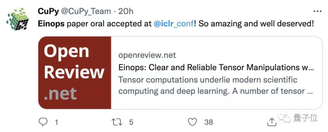 ICLR 2022将其接收为Oral论文的消息一出,无数白嫖多年的“精神股东”们纷纷奔走相告,认为Einops确实“当之无愧”: