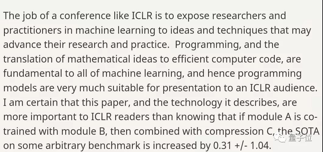 比起将几个模块共同训练、压缩、结合,最后在某个任意基准上的SOTA增加0.31 +/-1.04,这篇论文所描述的技术对于ICLR读者来说更重要。