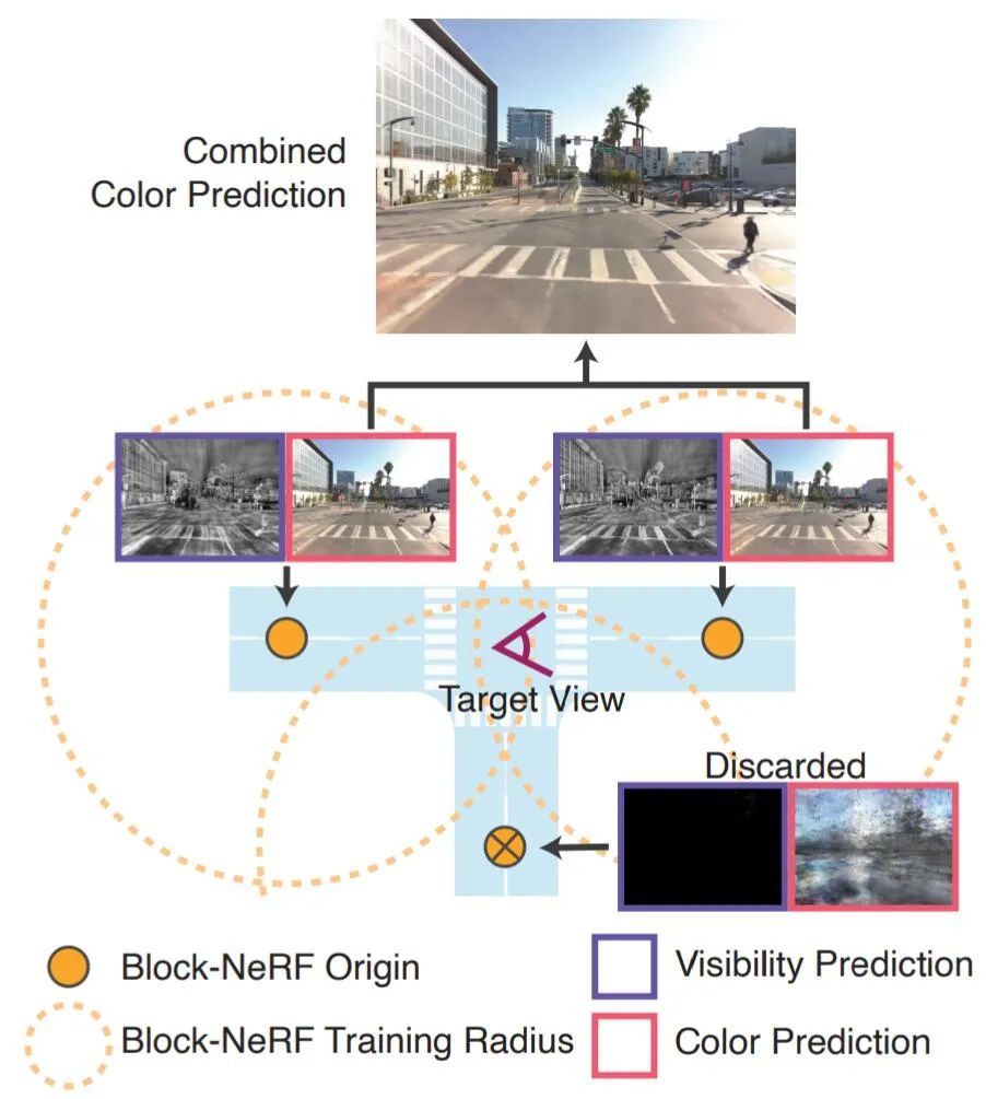 Block-NeRF 是一种神经辐射场的变体,可以表征大规模环境。具体来说,该研究表明,当扩展 NeRF 以渲染跨越多个街区的城市场景时,将场景分解为多个单独训练的 NeRF 至关重要。这种分解将渲染时间与场景大小分离,使渲染能够扩展到任意大的环境,并允许对环境进行逐块更新。