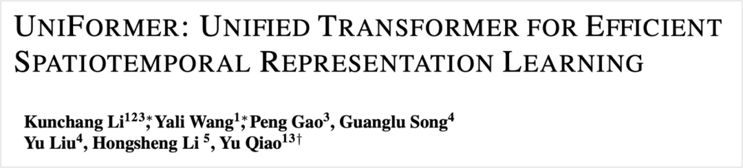 UniFormer: Unified Transformer for Efficient Spatiotemporal Representation Learning
