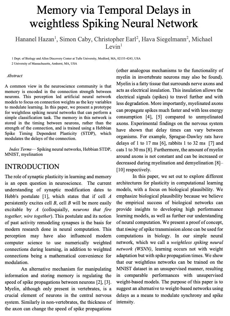 [LG] Memory via Temporal Delays in weightless Spiking Neural Network