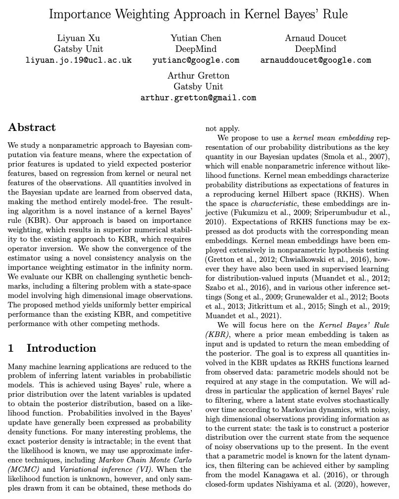 [LG] Importance Weighting Approach in Kernel Bayes' Rule