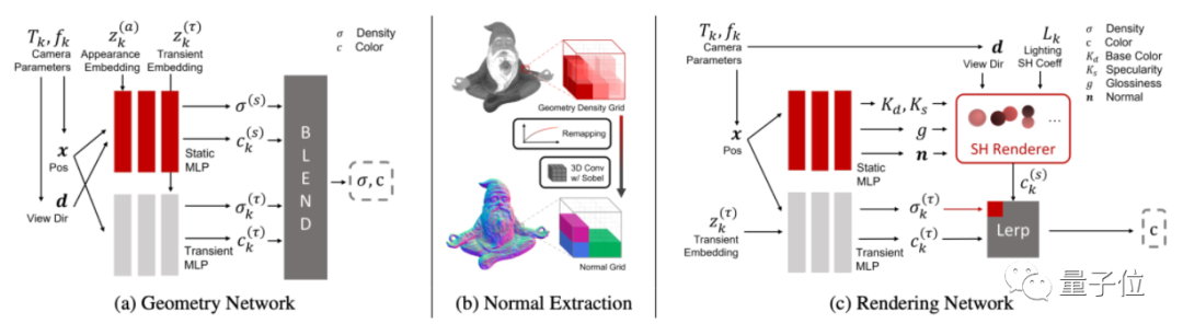 它主要由2个网络构成,包括深度提取网络(a)和渲染网络(c)。