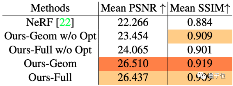 具体到峰值信噪比(PSNR)和结构相似性(SSIM)来看,深度提取网络的“抠图”技术都挺不错,相较NeRF做得更好: