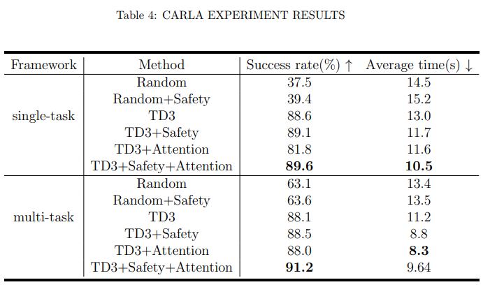 【推荐理由】对于自动驾驶来说,多任务交叉口导航(包括无保护左转、右转和在密集交通中直行)仍然是一项具有挑战性的任务。对于人类驾驶员来说,与其他交互式车辆的协商技巧是保证安全和效率的关键。然而,在多任务交叉口导航中,很难平衡自动驾驶车辆的安全性和效率。本文中提出了一种多任务的安全强化学习方法,以提高与其他交通参与者互动时的安全性和效率。具体而言,社交注意力模块用于关注谈判工具的状态。此外,在多任务强化学习框架中增加了一个安全层,以保证安全协商。本文在模拟多任务交叉口导航的SUMO和CARLA中进行了大量交通流和高保真车辆模型的对比实验,这两个实验都表明,对于多任务交叉口导航,该算法可以在保持交通效率一致的情况下提高安全性。