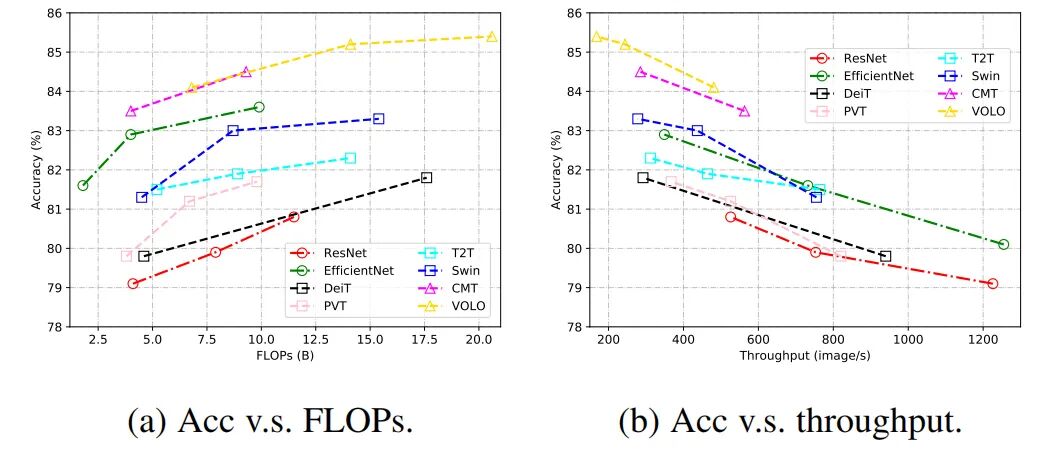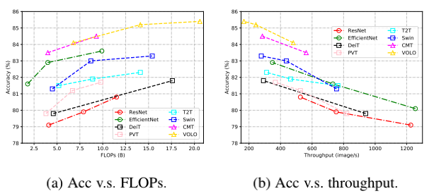 图 2 代表性 CNN 和 Transformer 网络的 FLOPs / 吞吐量对比