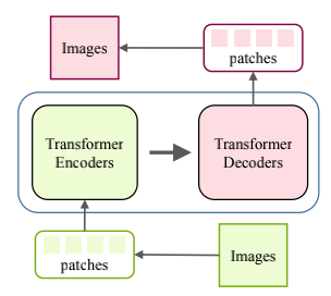 图像超分辨率和图像生成等底层视觉同样是计算机视觉领域的一个重要问题,目前也有一些团队专心于研究如何将 Transformer 应用于底层视觉中来。图 3 和图 4 展示了在底层视觉中使用 Transformer 的方式。在图像处理任务中,首先将图像编码为一系列 token,Transformer 编码器使用该序列作为输入,进而用 Transformer 解码器生成所需图像。在图像生成任务中,基于 GAN 的模型直接学习解码器生成的 token,通过线性映射输出图像,而基于 Transformer 的模型训练自编码器学习图像的码本,并使用自回归 Transformer 模型预测编码的 token。而一个有意义的未来研究方向是为不同的图像处理任务设计合适的网络架构。
