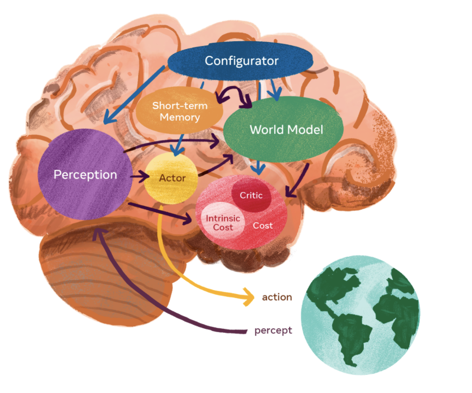 LeCun提出,学习”世界模型“——世界运行的内部模型——的能力可能是关键。