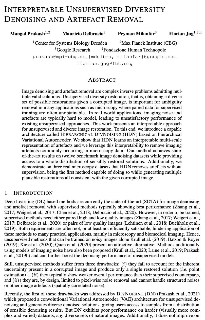 [CV] Interpretable Unsupervised Diversity Denoising and Artefact Removal
