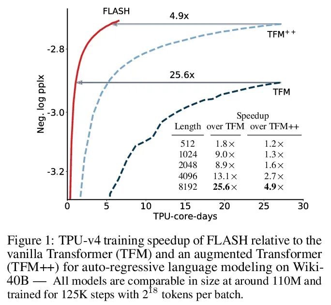 线性时间Transformer质量。本文重新审视了Transformer的设计选择,并提出了解决其处理长序列的弱点的方法。提出了一个简单的层,门控注意力单元,允许用质量损失最小化的较弱的单头注意力。提出一个补充这个新层的线性近似方法,对加速器友好,并且在质量上具有高度竞争力。由此产生的模型FLASH2,在短(512)和长(8K)的上下文长度上与改进的Transformer困惑度相匹配,在Wiki-40B上实现了4.9倍的训练速度,在PG-19上实现了12.1倍的自回归语言建模,在C4上实现了4.8倍的掩码语言建模。