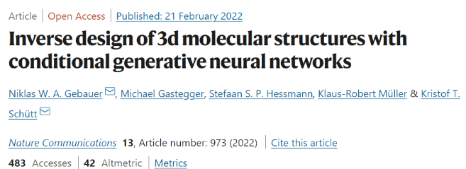 该研究以「Inverse design of 3d molecular structures with conditional generative neural networks」,于 2022 年 2 月 21 日发布在《Nature Communications》。