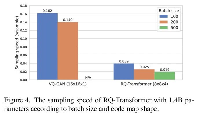 基于残差量化的自回归图像生成。对于高分辨率图像的自回归(AR)建模,矢量量化(VQ)将图像表示为一串离散代码。短序列长度对于AR模型来说是很重要的,可减少其计算成本以考虑代码的长程交互。本文假设之前的VQ不能缩短代码序列并在速率-失真权衡方面共同生成高保真图像,提出了两阶段框架,其中包括残差量化VAE(RQ-VAE)和RQ-Transformer,以有效地产生高分辨率图像。给定一个固定的码本大小,RQ-VAE可以精确地逼近图像的特征图,并将图像表示为离散编码的堆叠图。RQ-Transformer学习通过预测下一堆编码来预测下一个位置的量化特征向量。由于RQ-VAE的精确近似,可以将256×256的图像表示为8×8分辨率的特征图,而RQ-Transformer可有效地降低计算成本。所提出框架在无条件和有条件图像生成的各种基准上优于现有的AR模型,比之前的AR模型有明显更快的采样速度来生成高质量的图像。