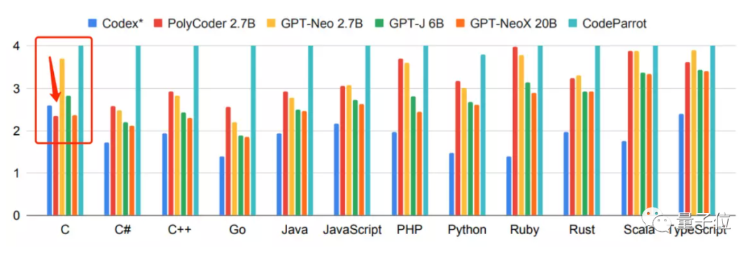 据研究人员表示,虽然PolyCoder最大只有27亿参数(相比Codex有120亿参数),但它用C语言写出来的代码,比Codex的效果还要好。