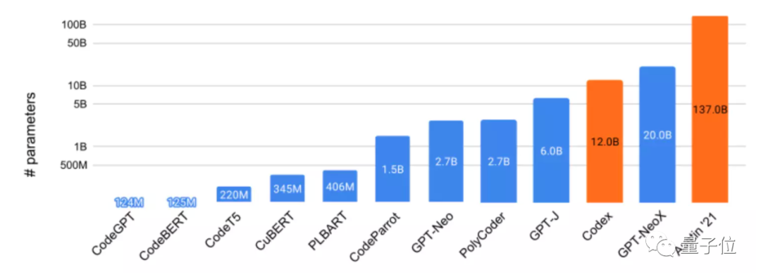 从参数量来看,PolyCoder并不是最顶尖的,最大的27亿参数模型也只有Codex的四分之一不到。