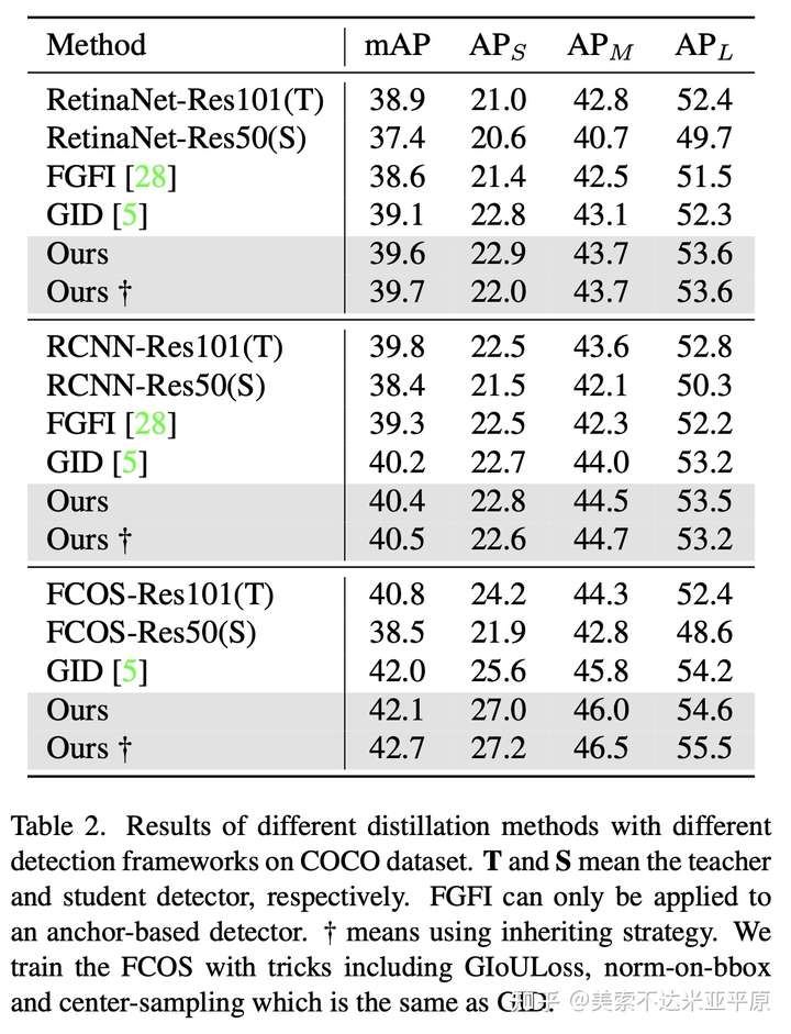 FGD仅需要获取学生与教师的特征图,便可完成重点蒸馏损失与全局蒸馏损失的计算,可以很方便的应用到各种类型的检测器上。