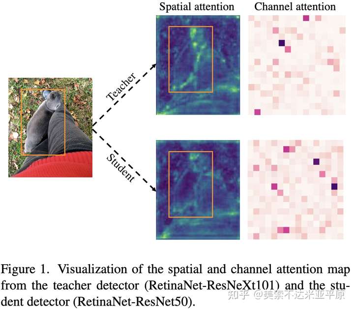 知识蒸馏旨在使学生学习教师的知识,以获得相似的输出从而提升性能。为了探索学生与教师在特征层面的差异,我们首先对二者的特征图进行了可视化。可以看到在空间与通道注意力上,教师与学生均存在较大的差异。其中在空间注意力上,二者在前景中的差异较大,在背景中的差异较小,这会给蒸馏中的学生带来不同的学习难度。