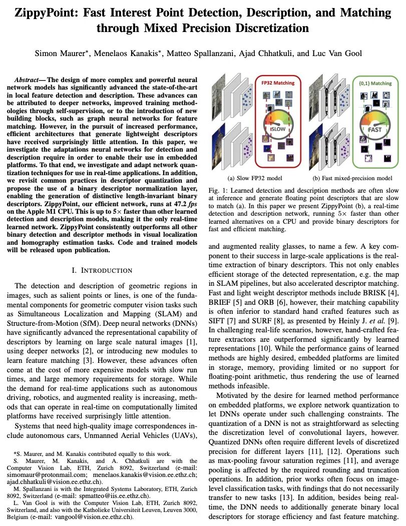 [CV] ZippyPoint: Fast Interest Point Detection, Description, and Matching through Mixed Precision Discretization