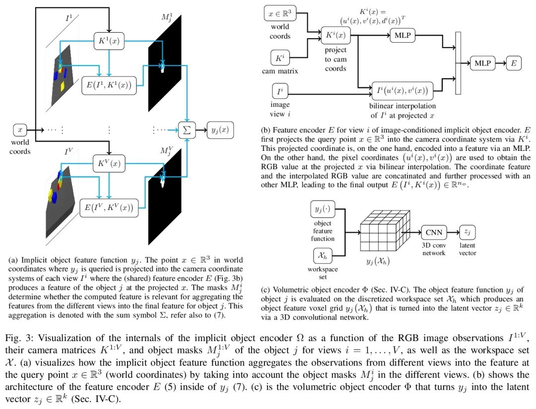 基于复合神经辐射场的多目标动力学学习。本文提出一种方法,从基于隐性目标编码器、神经辐射场(NeRFs)和图神经网络的图像观测中学习复合预测模型。由于其强大的3D先验,NeRFs已经成为代表场景的流行选择。然而,大多数NeRF方法都是在单一场景下训练的,用一个全局模型表示整个场景,这使得对包含不同数量物体的新场景的泛化具有挑战性。本文提出了一个复合式的、以物体为中心的自编码器框架,将场景的多个视图映射到一组分别代表每个物体的潜向量。潜向量为各个NeRF模型提供参数,从这些模型可以重建场景,并从新的视角进行渲染。在潜空间中训练一个图神经网络动力学模型,以实现动力学预测的复合性。所提出方法的一个主要特点是,通过NeRF模型学习到的场景的3D信息使得在学习动力学模型时纳入结构先验成为可能,使长期预测更加稳定。对于规划,在学习的潜空间中利用RRT,可以利用模型和隐含的物体编码器,使潜空间的采样信息量更大,效率更高。实验表明,该模型在一个包含许多物体的推动任务中的表现优于几个基线。
