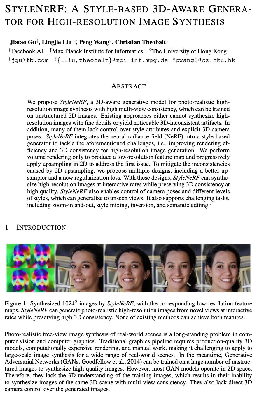 2、[CV] StyleNeRF: A Style-based 3D-Aware Generator for High-resolution Image Synthesis