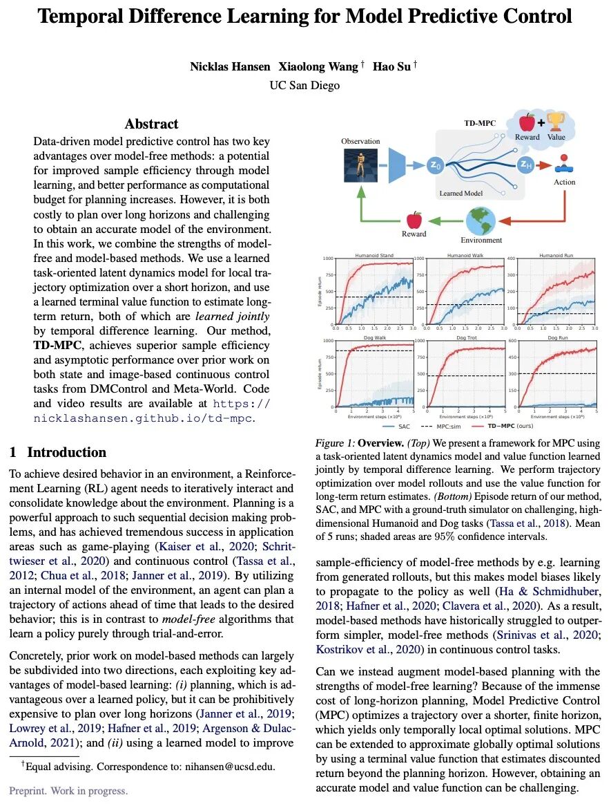 [LG] Temporal Difference Learning for Model Predictive Control