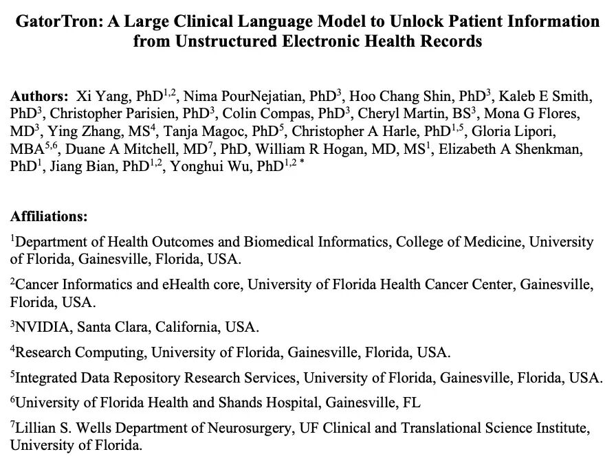 4、[CL] GatorTron: A Large Clinical Language Model to Unlock Patient Information from Unstructured Electronic Health Records