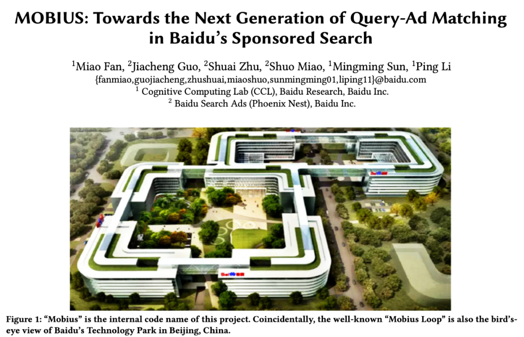 这个论文来自百度研究院李平老师团队(CCL实验室),一作范淼老师也是数据挖掘领域的大牛。不得不说模型的名字很有逼格,而且如上图所示,看到论文的Figure 1,才发现百度科技园的鸟瞰图竟然就是一个莫比乌斯环!足以看出这篇论文对百度的分量了。