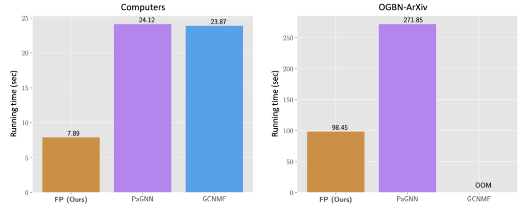 作者使用七个标准节点分类基准对 FP 进行了广泛的实验验证,其中随机删除了可变部分的节点特征(独立于每个通道)。FP 后跟一个 2 层 GCN 在重建特征上的表现明显优于简单的基线以及最新的最先进的方法 [2-3]。FP 在特征缺失率高 (>90%) 的情况下尤为突出,而所有其他方法往往会受到影响。例如,即使丢失了 99% 的特征,与所有特征都存在的相同模型相比,FP 平均仅损失约 4% 的相对准确度。