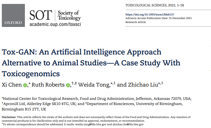 2021年12月31日,FDA-NCTR生物信息学和生物统计学部的刘智超、童伟达等人在Toxicological Sciences杂志发表文章,提出了一个基于深度生成对抗网络的框架,该框架从现有的动物数据中学习后,就可以根据药物的化学结构,生成多个时间和剂量条件下的体内转录组图谱,而无需额外的动物实验。