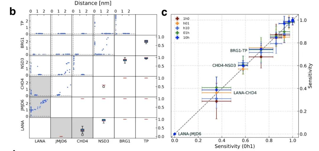 在下图中可见TP这个结合最强的多肽在两两竞争的预测中,大多数的构象和真实构象的差异很小(distance = ~0 nm)。在BRG1中同样观察到了这个现象,说白了好的竞争体现在距离矩阵是否为接近0的直线。