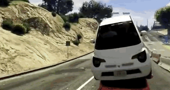 好,先来看看GTA5,输入A car flying in the air(空中汽车):