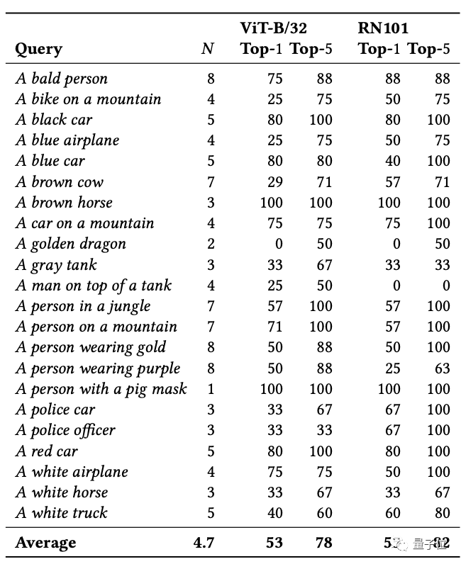 团队选择了基于上述AI系统的两种架构:RN101和ViT-B/32,然后分别测试了其在不同情况下的准确率。