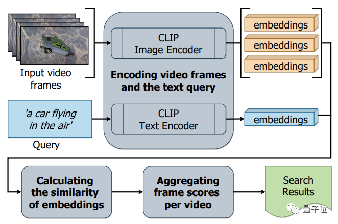 因此,团队便依靠CLIP模型的零次迁移学习(Zero-shot Transfer Learning),在不需要任何数据标签和训练的情况下,以英文文本查询为输入,从上面的游戏Bug数据集中检索相关视频。