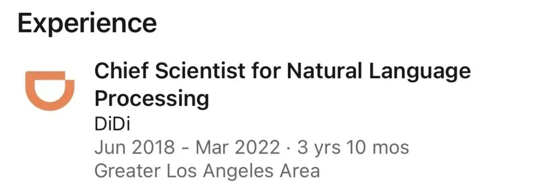 随后,他也在领英主页上更新了自己在滴滴(DiDi)的履职时间:从2018年6月到2022年3月。