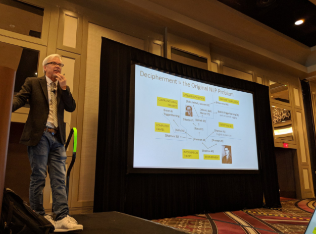 图注:Kevin Knight 在 NAACL 2018 上作演讲