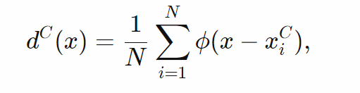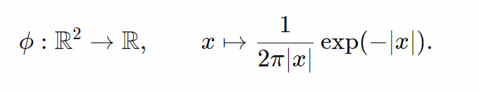 这个核有单位质量,在x=0时趋于无穷,且从原点衰减: