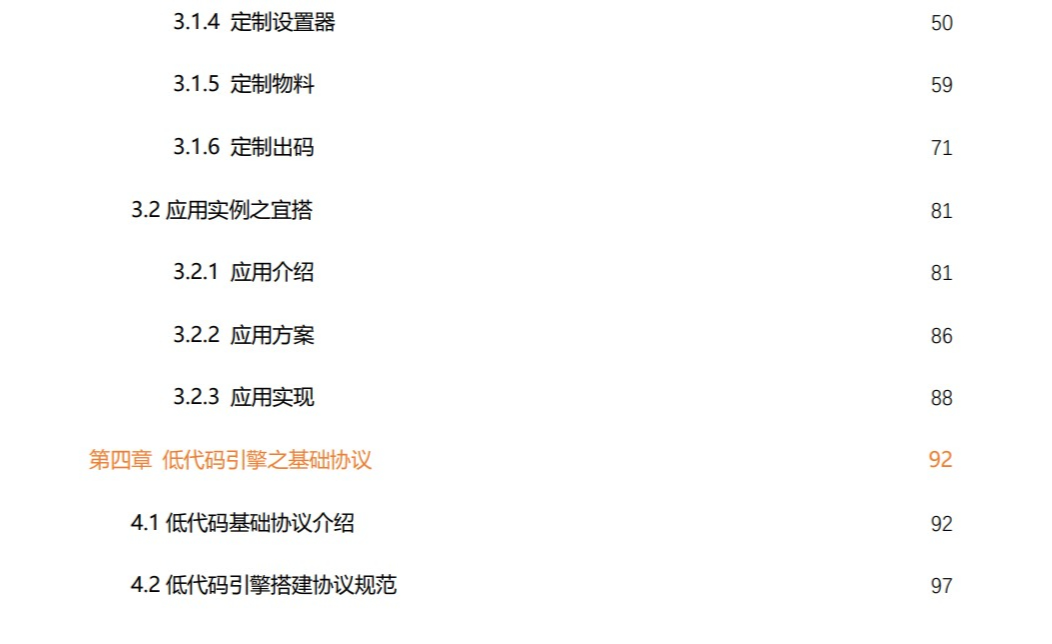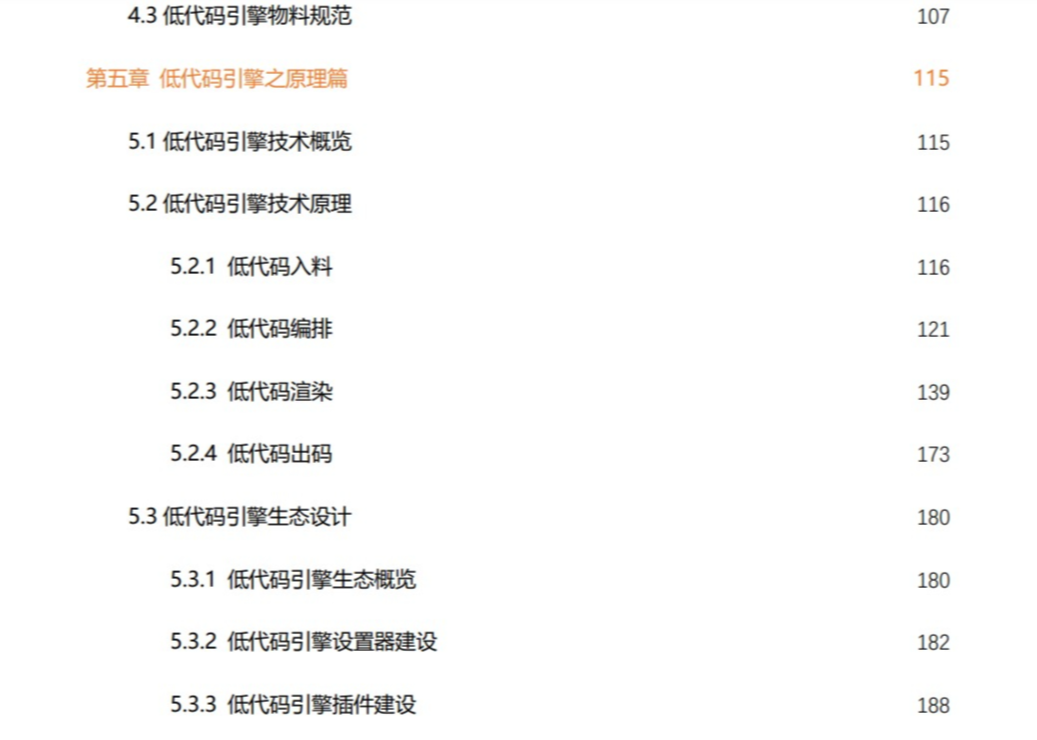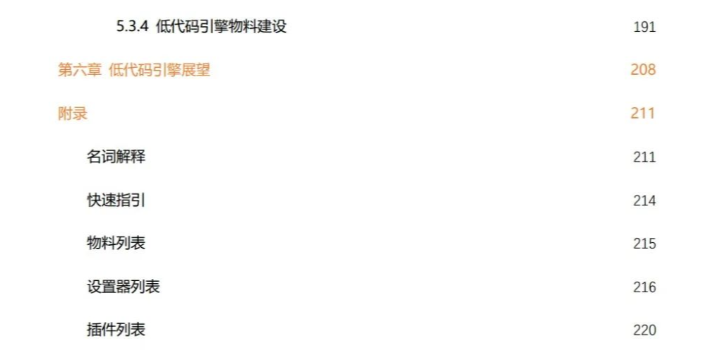 本电子手册主要有六章,第一章会跟大家介绍一下低代码是什么。第二章介绍低代码引擎是什么,并且带着大家去使用低代码引擎。第三章介绍了低代码引擎的使用。接下来第四章会介绍低代码引擎的底层协议,让大家了解低代码底层协议是什么,有什么作用。第五章就会带大家深入到引擎的原理部分,介绍低代码引擎四大核心模块(编排、渲染、出码、入料)的原理和低代码引擎周边生态建设的原理。最后第六章会对低代码引擎未来进行一下畅想。